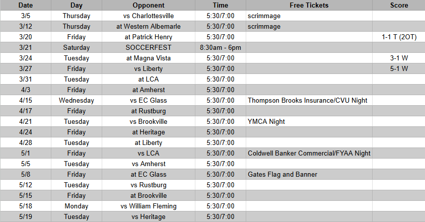 Boys Schedule
